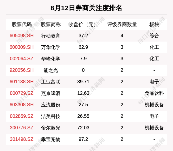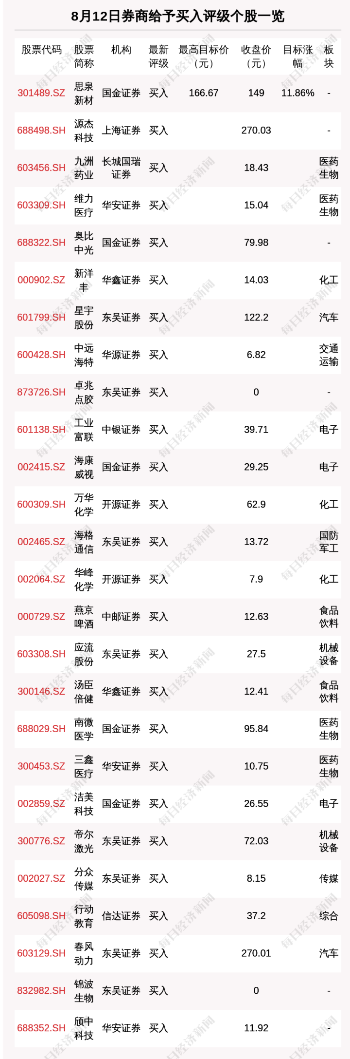从券商对个股的怜惜进度来看,有11只个股取得多家券商怜惜,券商怜惜数目名次居前的个股是举止解释(605098.SH)、万华化学(600309.SH)、华峰化学(002064.SZ)。