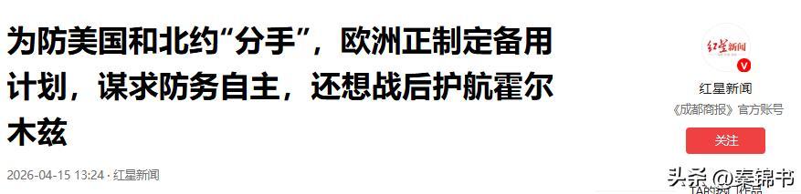 为防好意思国和北约“离婚”,欧洲正制定备用运筹帷幄,谋求防务自主,还念念战后护航霍尔木兹——2026-04-15 13:24·红星新闻